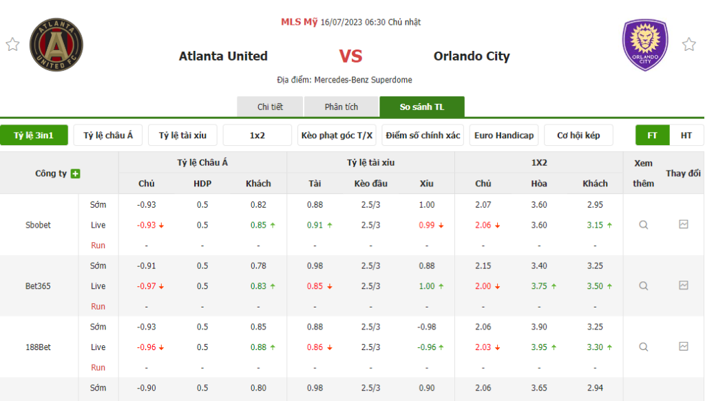 Tỷ lệ kèo trận đấu Atlanta United vs Orlando City