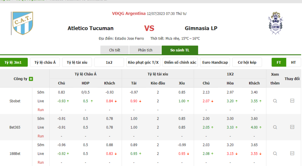 Tỷ lệ kèo trận đấu Atletico Tucuman vs Gimnasia LP