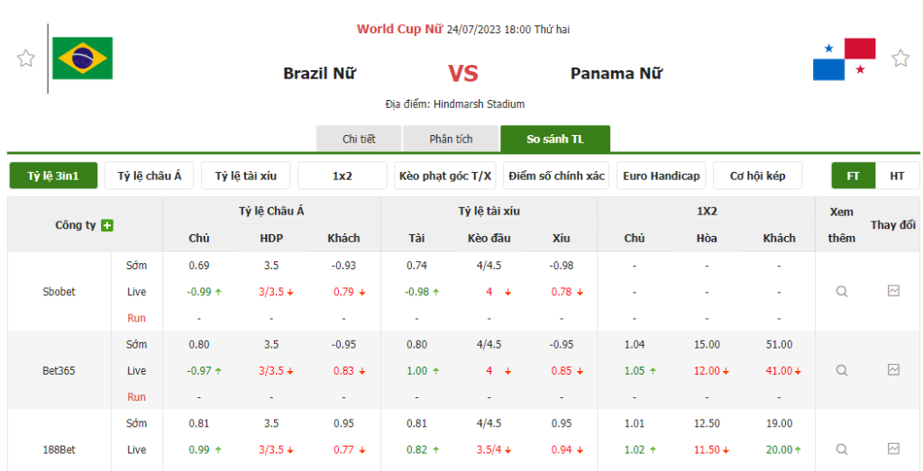 Tỷ lệ kèo trận đấu Brazil Nữ vs Panama Nữ